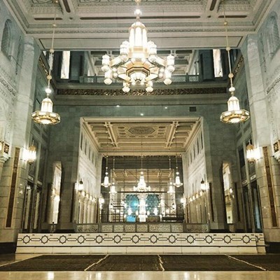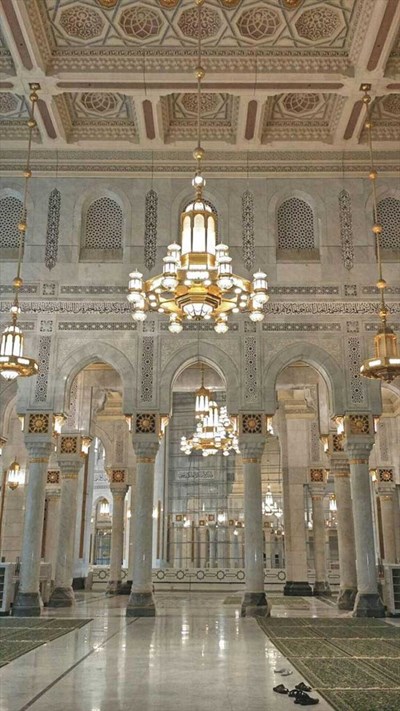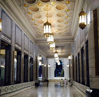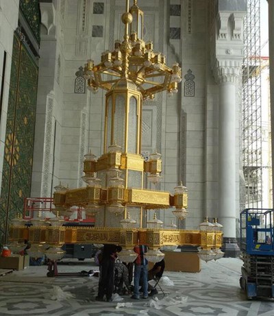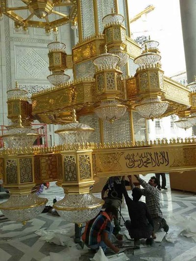 كما أظهرت صور أخرى بعض أعمال التشطيبات النهائية، منها تركيب ثريات كبيرة الحجم ذهبية اللون، لتكون متناغمة مع جمال المكان وقدسيته،وفقا لموقع اخبار 24.