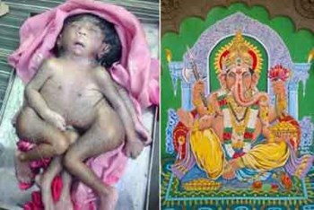 حادثة نادرة تفاجاءت أسرة بولادة طفلها بثمانية أطراف ماجعل الآف الهنود